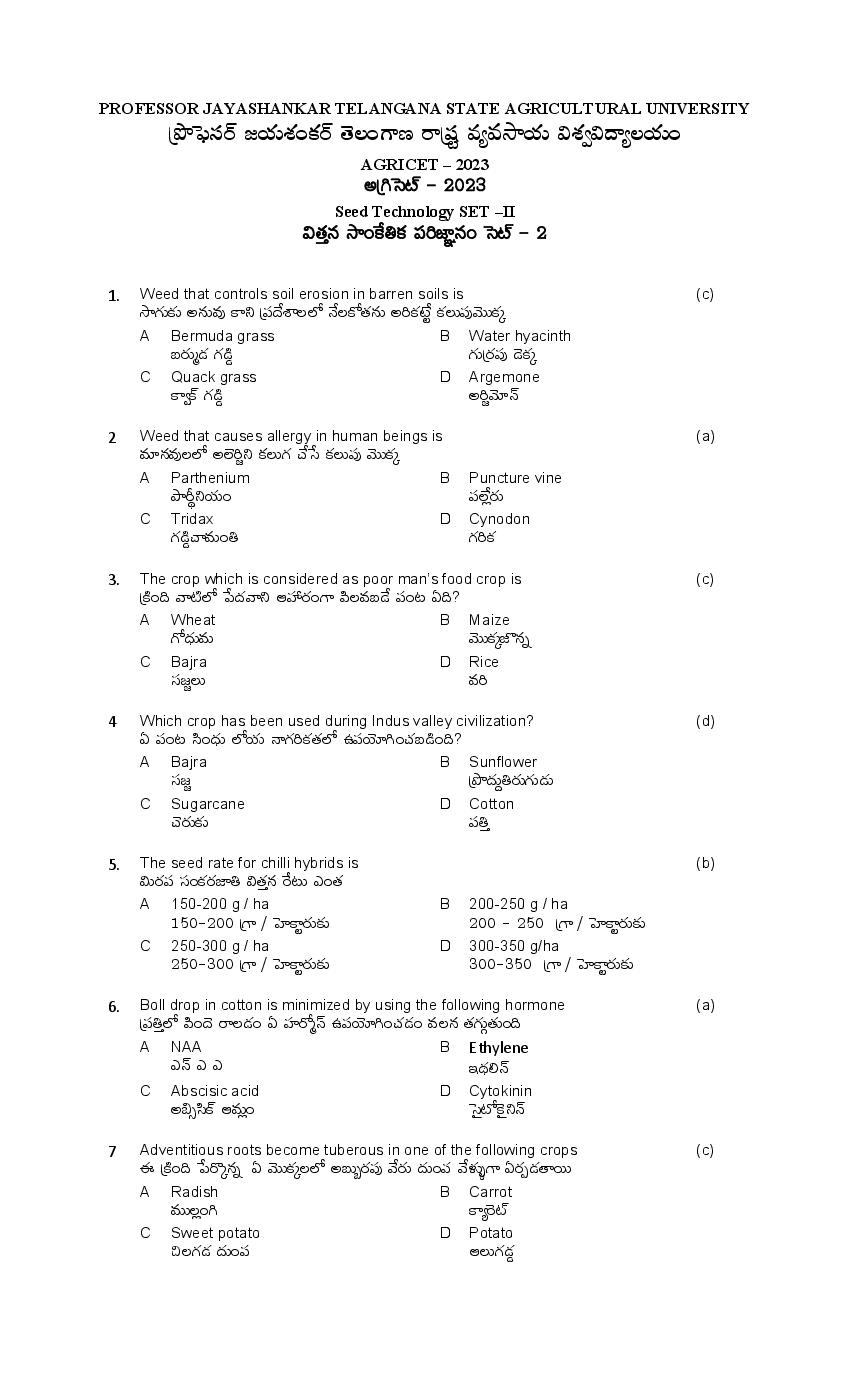 TS AGRICET 2023 Question Paper with Answer Key Seed Technology